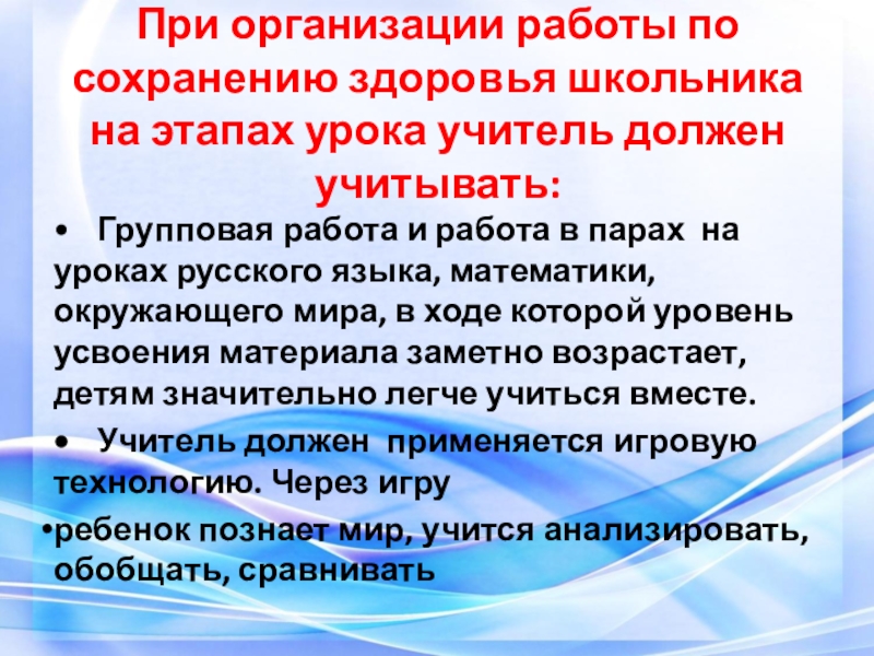 • Учитель должен применяется игровую технологию. Через игру