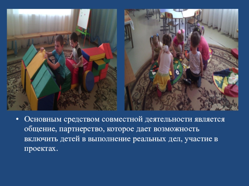 Слайд 7Основным средством совместной деятельности является общение, партнерство, которое дает возможность включить