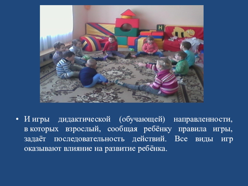 Слайд 19И игры дидактической (обучающей) направленности, в которых взрослый, сообщая ребёнку правила игры, задаёт
