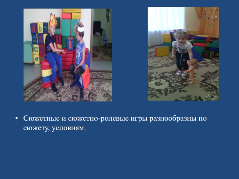 Слайд 20Сюжетные и сюжетно-ролевые игры разнообразны по сюжету, условиям.