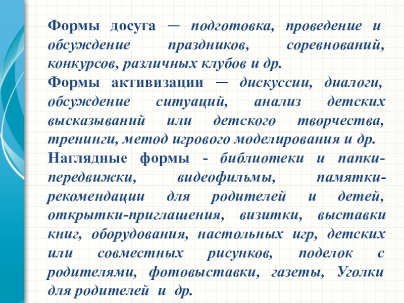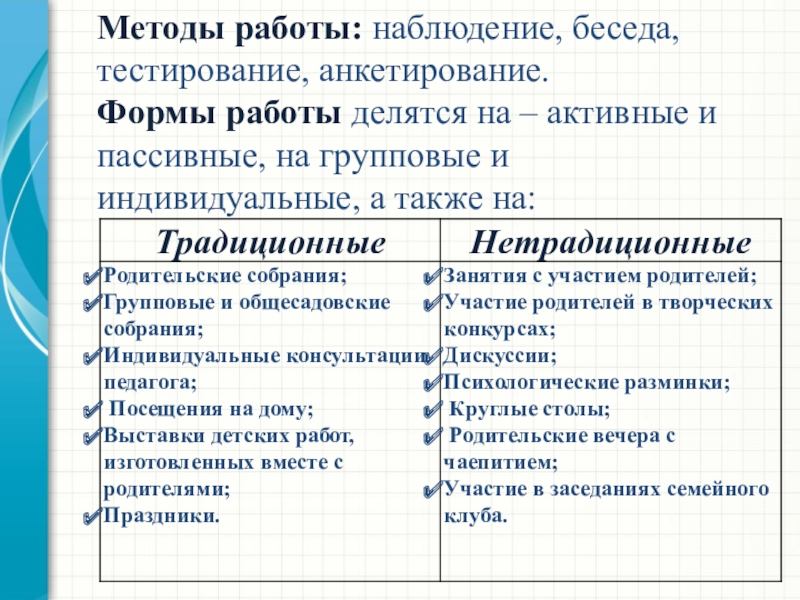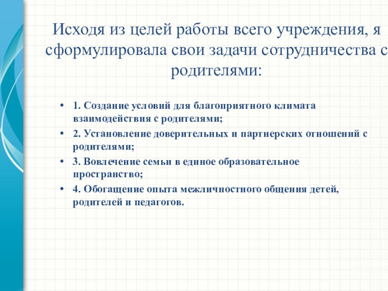 1. Создание условий для благоприятного климата взаимодействия с родителями;