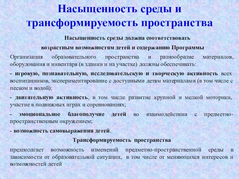 Слайд 5Насыщенность среды и трансформируемость пространства
