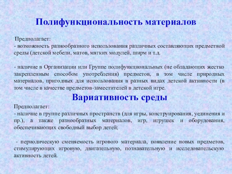 - возможность разнообразного использования различных составляющих предметной среды (детской мебели,