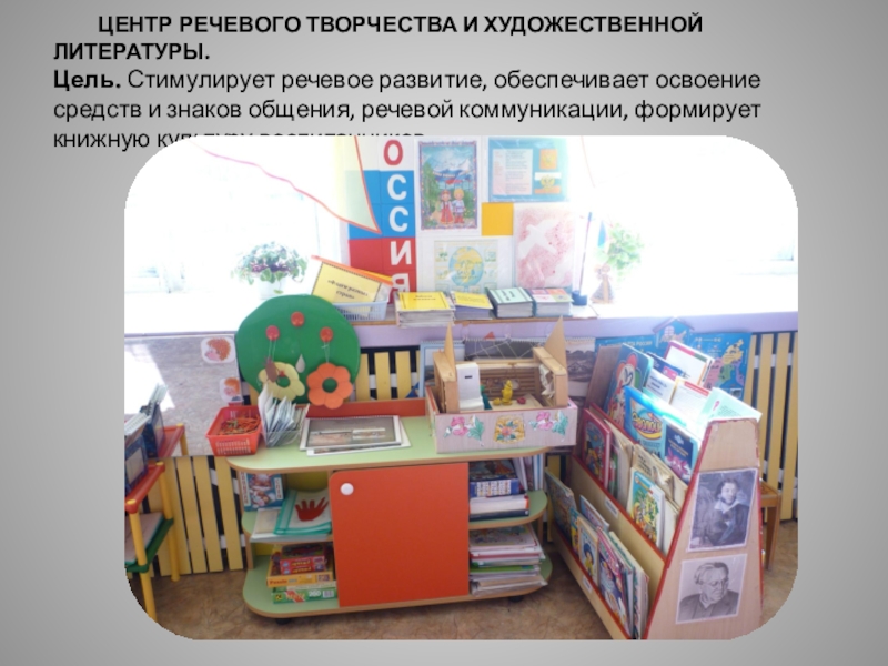 Слайд 4 ЦЕНТР РЕЧЕВОГО ТВОРЧЕСТВА И ХУДОЖЕСТВЕННОЙ ЛИТЕРАТУРЫ.