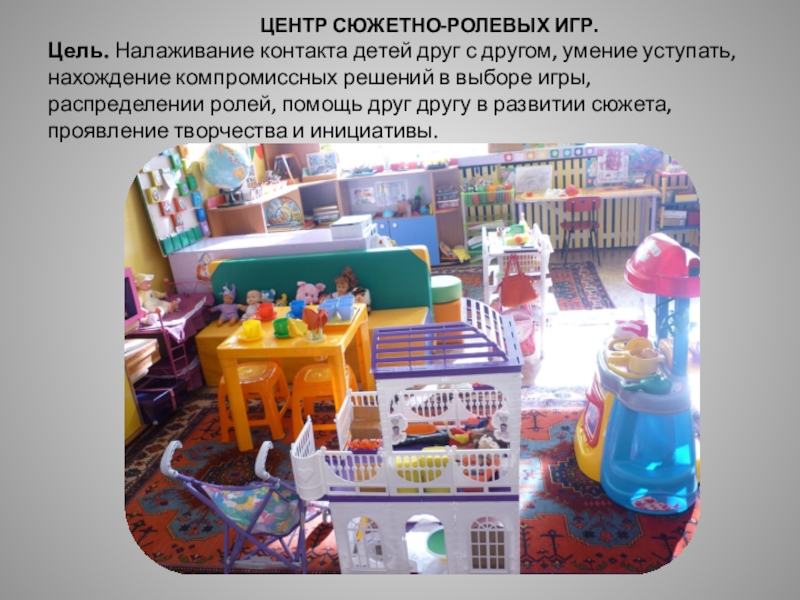 Цель. Налаживание контакта детей друг с другом, умение уступать, нахождение компромиссных решений в выборе игры, распределении ролей, помощь друг другу в развитии сюжета, проявление творчества и инициативы.
