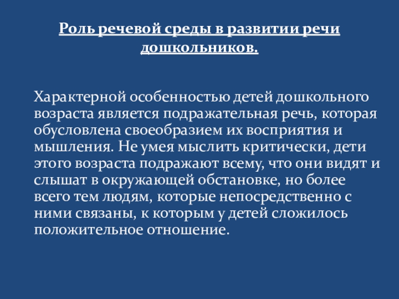 Слайд 5Роль речевой среды в развитии речи дошкольников.