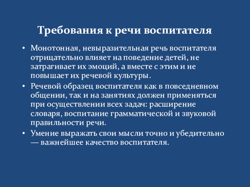Умение выражать свои мысли точно и убедительно — важнейшее качество воспитателя.