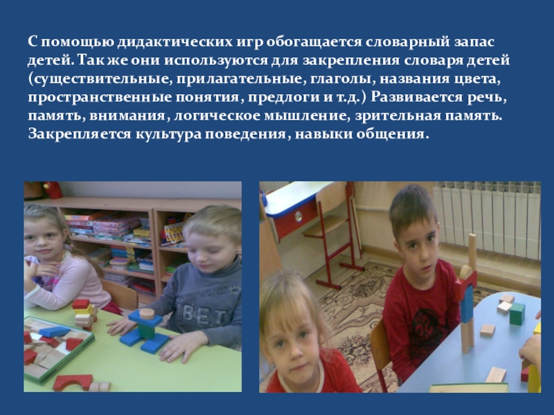 Слайд 15С помощью дидактических игр обогащается словарный запас детей. Так же они