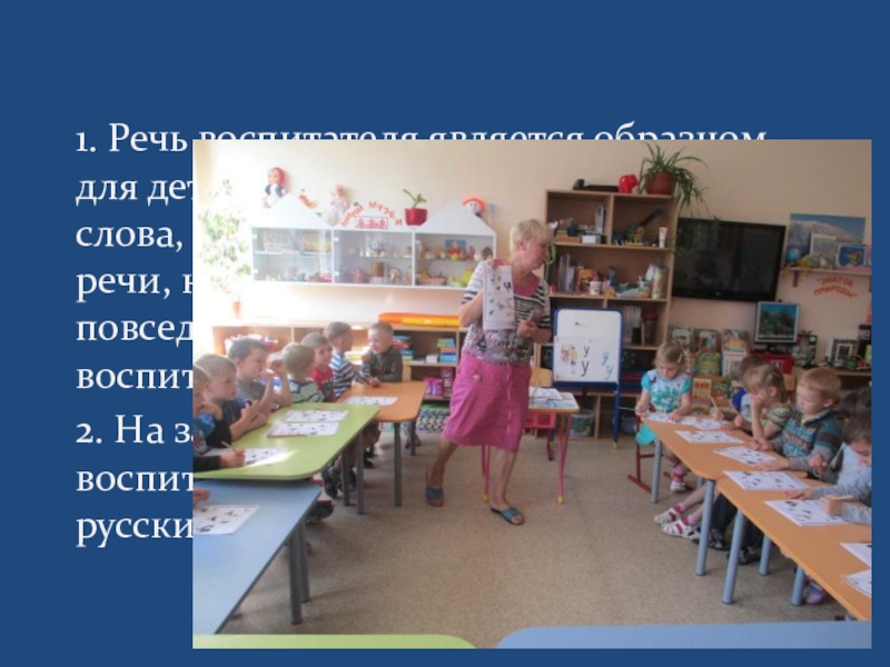 Слайд 61. Речь воспитателя является образцом для детей в широком значении этого