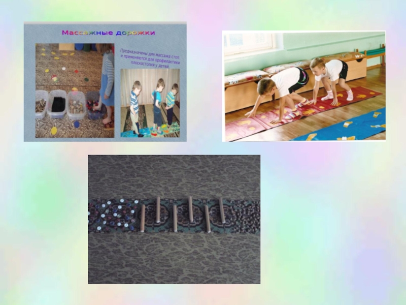 создать «полосы препятствий», чтобы дети могли выполнять различные двигательные задания (пройти по дорожкам, перепрыгнуть с кочки на кочку, пролезть в туннель и др.)