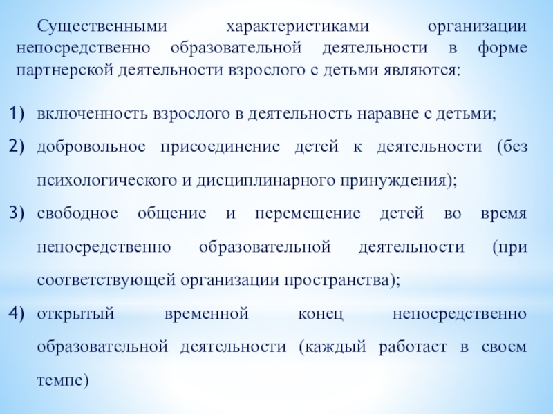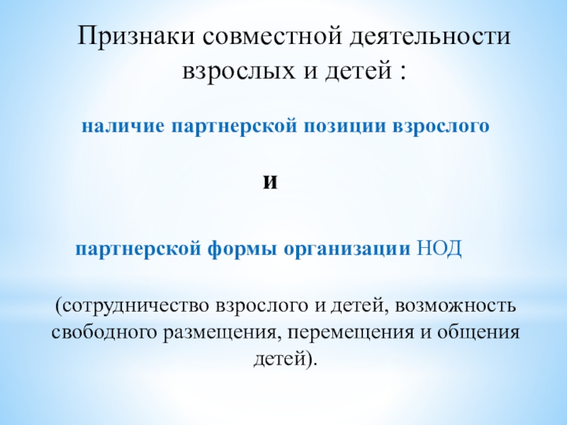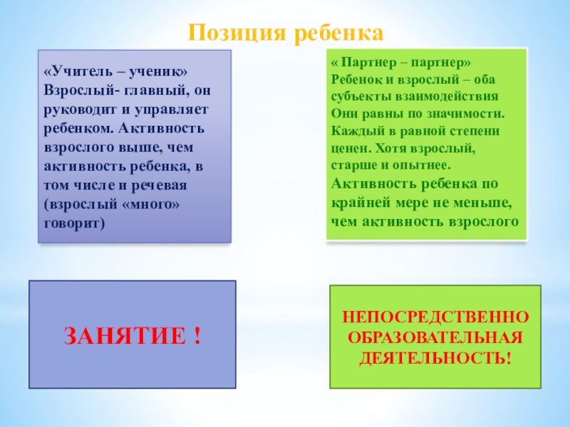 наличие партнерской позиции взрослого