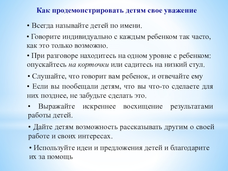 • Используйте идеи и предложения детей и благодарите их за помощь