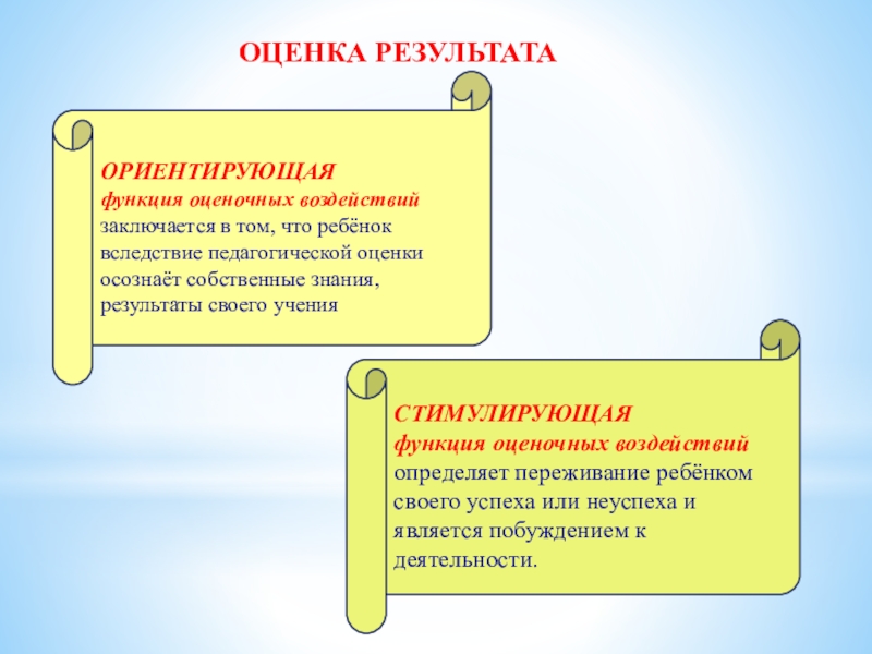 функция оценочных воздействий определяет переживание ребёнком своего успеха или неуспеха и является побуждением к деятельности.