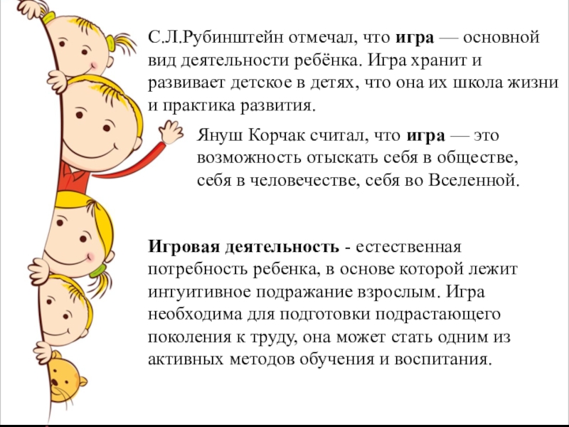 Януш Корчак считал, что игра — это возможность отыскать себя в обществе, себя в человечестве, себя во Вселенной.