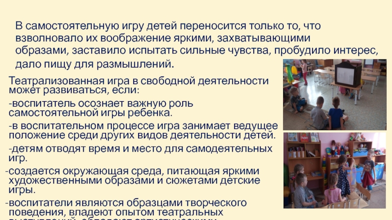 Театрализованная игра в свободной деятельности может развиваться, если: