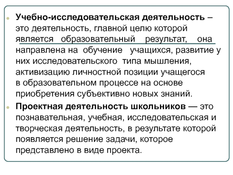 Слайд 2Учебно-исследовательская деятельность – это деятельность, главной целю которой является образовательный