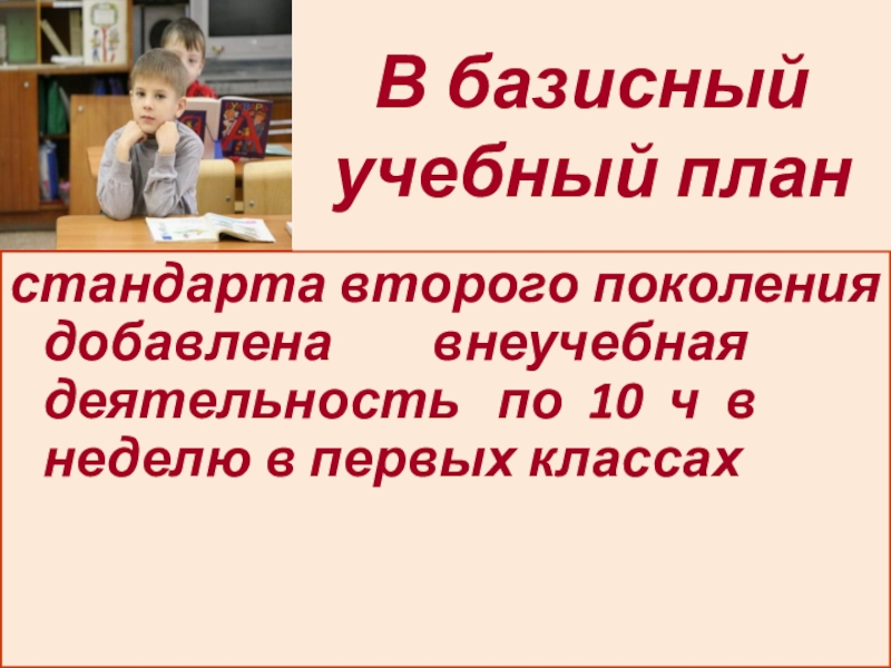 Слайд 2стандарта второго поколения добавлена внеучебная деятельность по
