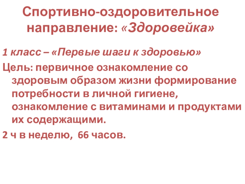 1 класс – «Первые шаги к здоровью»