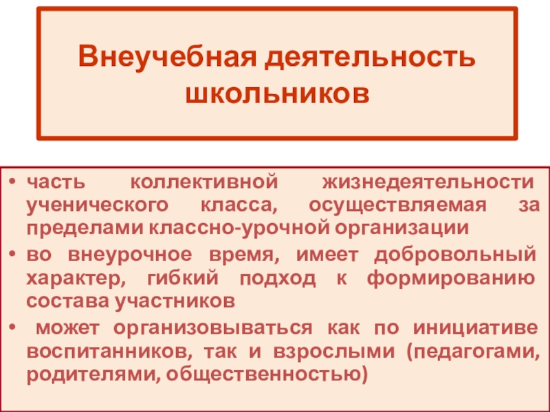 во внеурочное время, имеет добровольный характер, гибкий подход к формированию состава участников