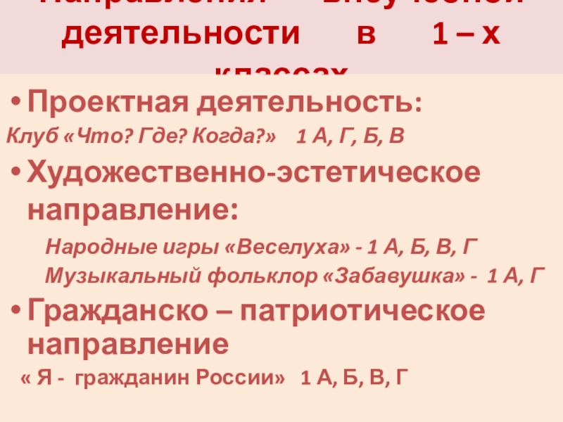Направления внеучебной