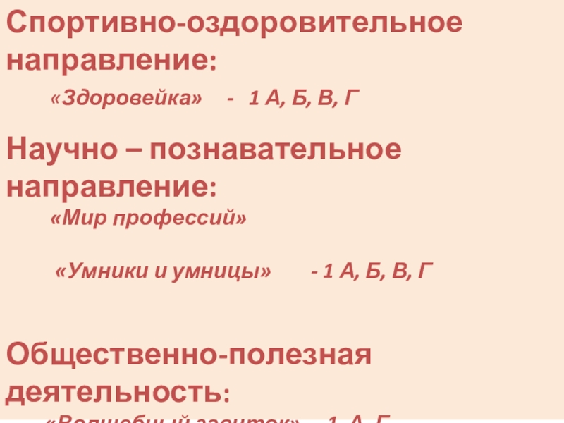 Слайд 9Спортивно-оздоровительное направление: