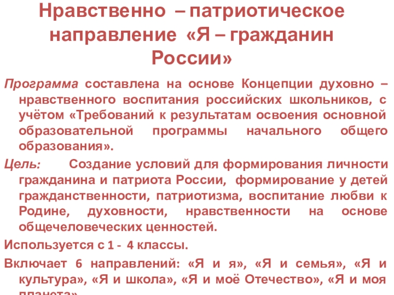 Нравственно – патриотическое направление «Я – гражданин России»