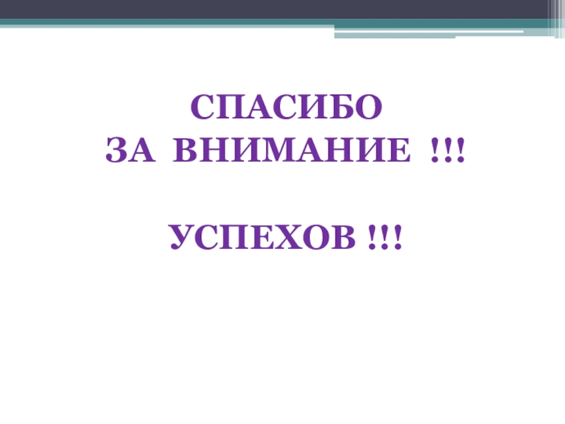 СПАСИБО ЗА ВНИМАНИЕ !!!УСПЕХОВ !!!
