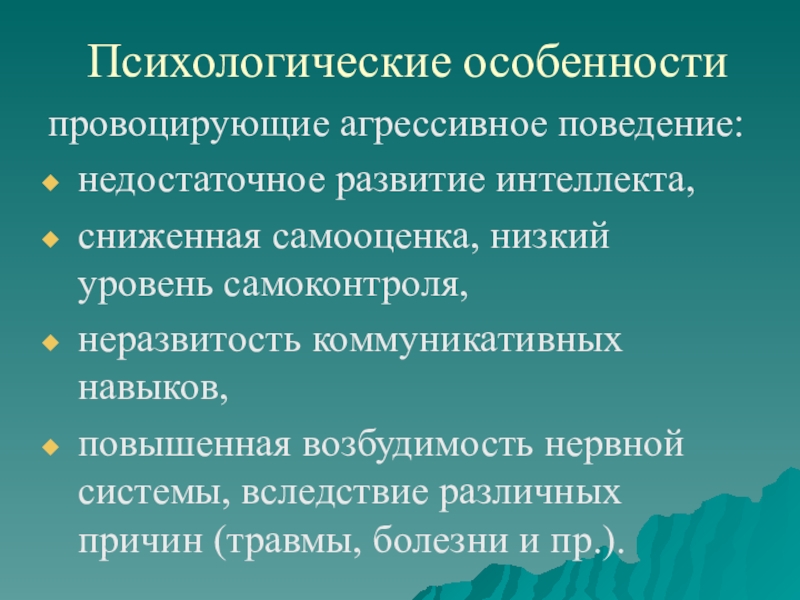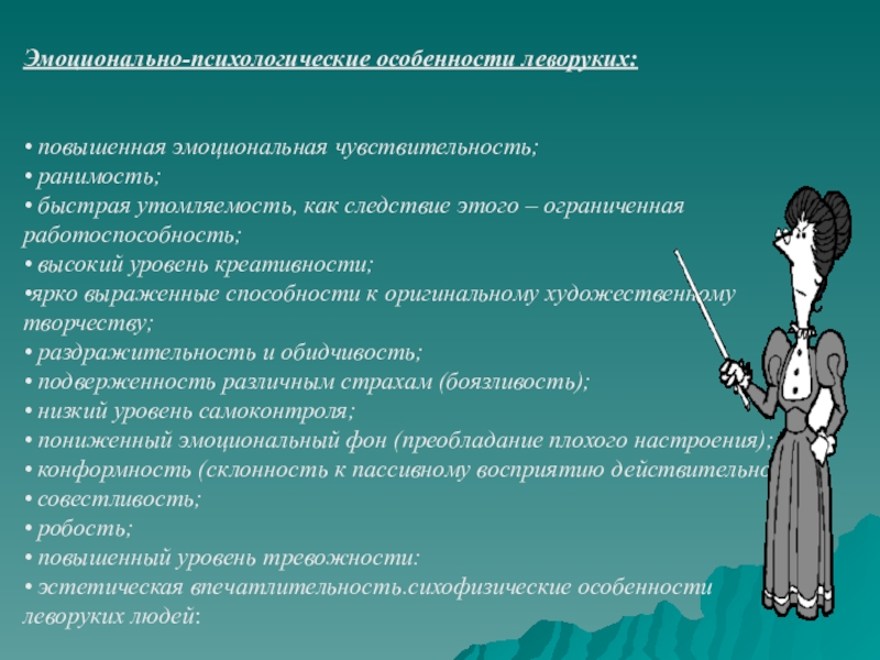 Эмоциональный (легкое возникновение отрицательных эмоций: гнева, отвращения, презрения, злости);