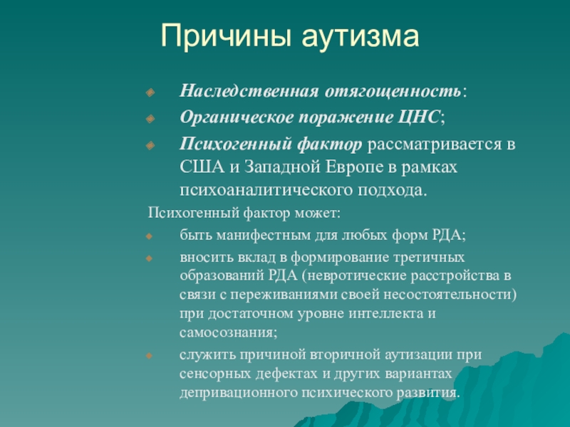 служить причиной вторичной аутизации при сенсорных дефектах и других вариантах депривационного психического развития.