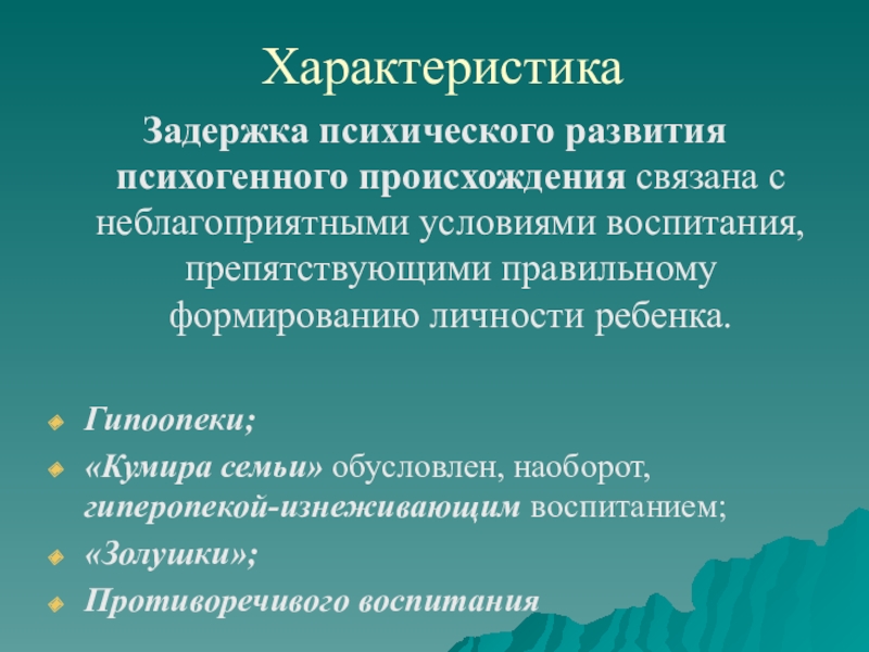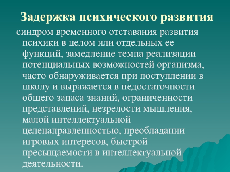 вносить вклад в формирование третичных образований РДА (невротические расстройства в связи с переживаниями своей несостоятельности) при достаточном уровне интеллекта и самосознания;
