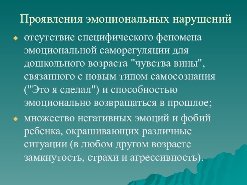 отсутствие специфического феномена эмоциональной саморегуляции для дошкольного возраста "чувства