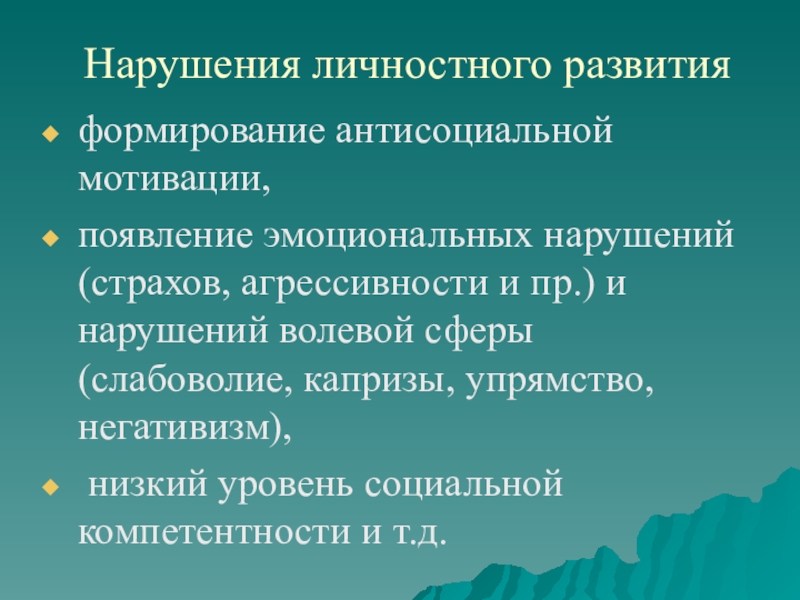 и пр.) и нарушений волевой сферы (слабоволие, капризы, упрямство, негативизм),