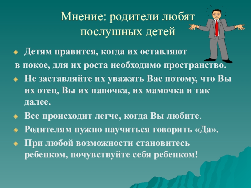 Не заставляйте их уважать Вас потому, что Вы их отец, Вы их папочка, их мамочка и так далее.