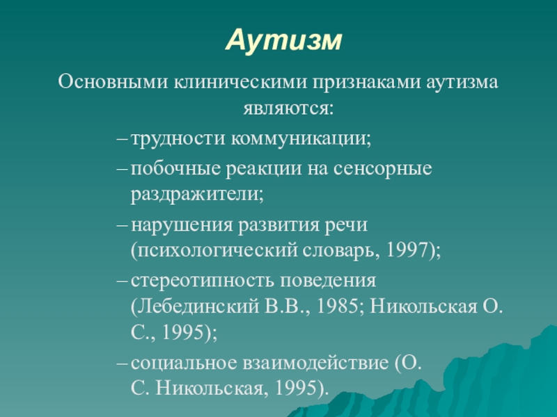 стереотипность поведения (Лебединский В.В., 1985; Никольская О.С., 1995);