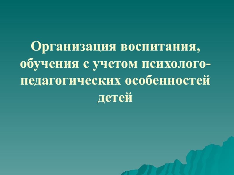 Слайд 1Организация воспитания, обучения с учетом психолого-педагогических особенностей детей