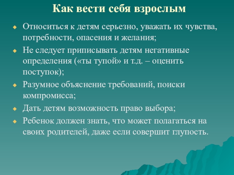 Относиться к детям серьезно, уважать их чувства, потребности,