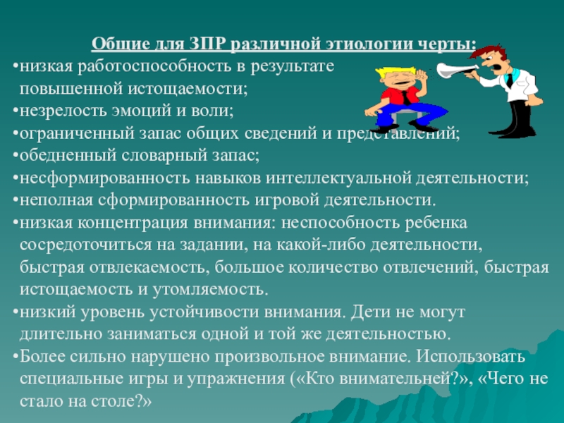 внимание уделять отвлекаемости и слабой организации деятельности.