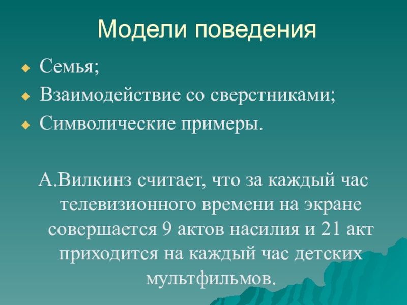 времени на экране совершается 9 актов насилия и 21 акт приходится на каждый час детских мультфильмов.