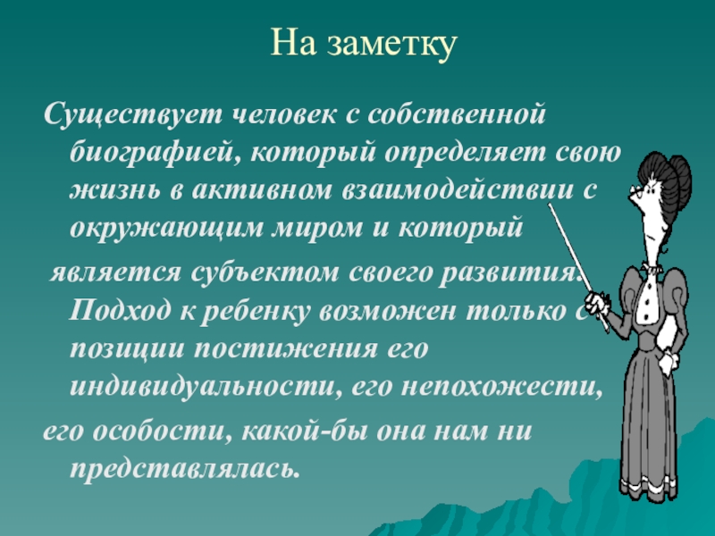 является субъектом своего развития. Подход к ребенку возможен только с позиции постижения его индивидуальности, его непохожести,