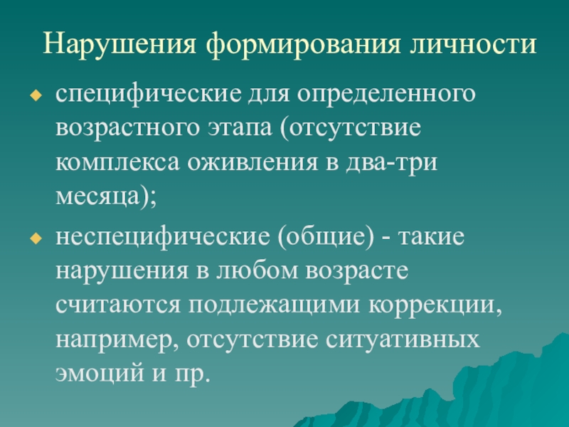 неспецифические (общие) - такие нарушения в любом возрасте считаются подлежащими коррекции, например, отсутствие ситуативных эмоций и пр.