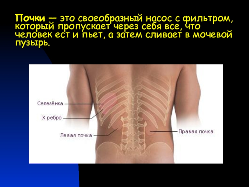 Слайд 10Почки — это своеобразный насос с фильтром, который пропускает через себя