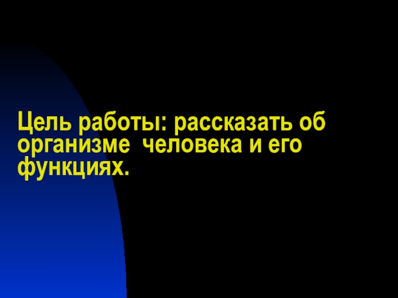 Слайд 2Цель работы: рассказать об организме человека и его функциях.