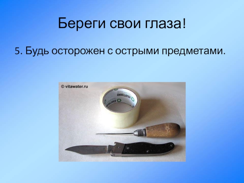 Береги свои глаза!5. Будь осторожен с острыми предметами.