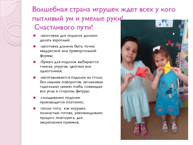 -изготавливается поделка на столе, без лишних поворотов, заглаживая тщательно линию сгиба, совмещая все углы и стороны фигуры;