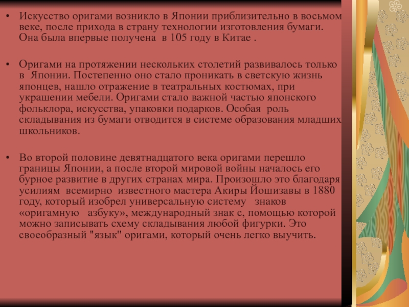 Искусство оригами возникло в Японии приблизительно в восьмом веке, после