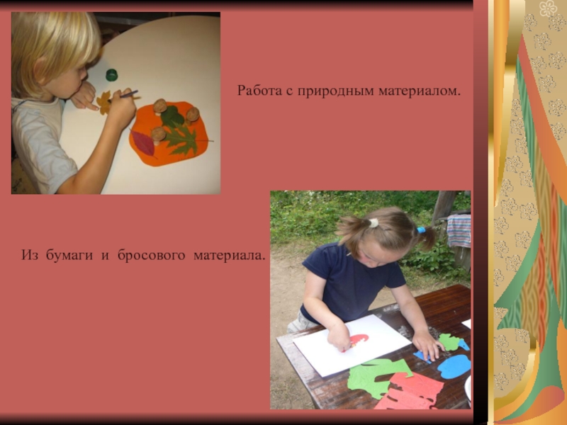 экспериментирование с бумагой разной фактуры, формы, цвета и т.д.;