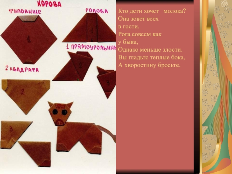 планирование этапов складывания с использованием сказки, в которой процесс складывания «зашифрован» в тексте;: