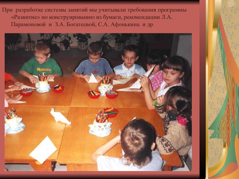 При разработке системы занятий мы учитывали требования программы «Развитие» по конструированию