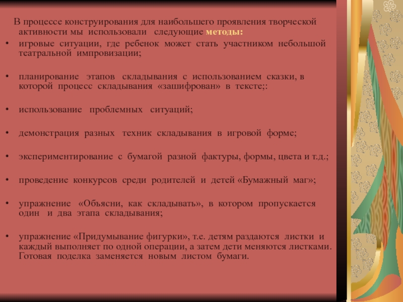 * взаимосвязь конструирования из бумаги с игрой и другими видами деятельности;
