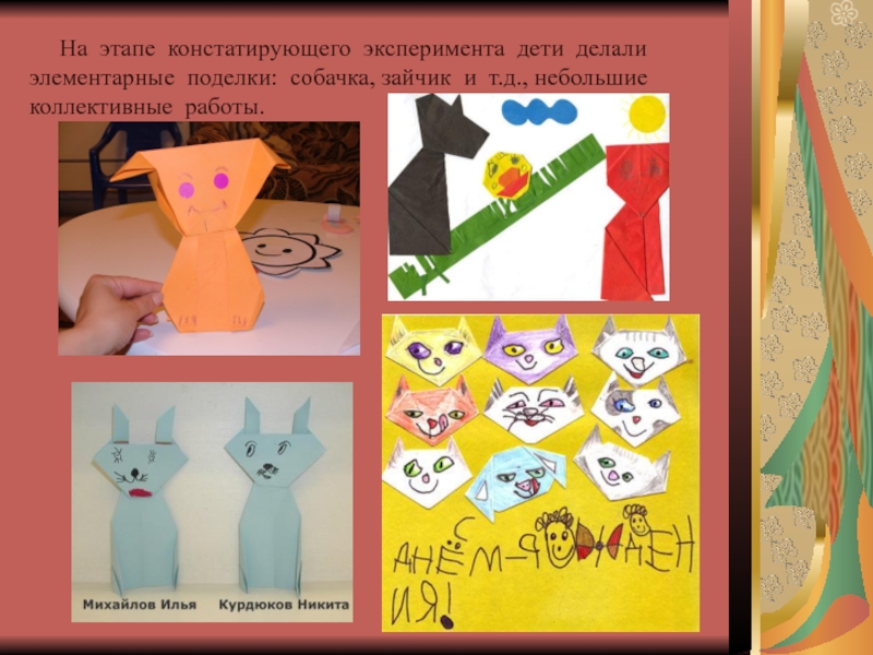 Слайд 16 На этапе констатирующего эксперимента дети делали элементарные поделки: